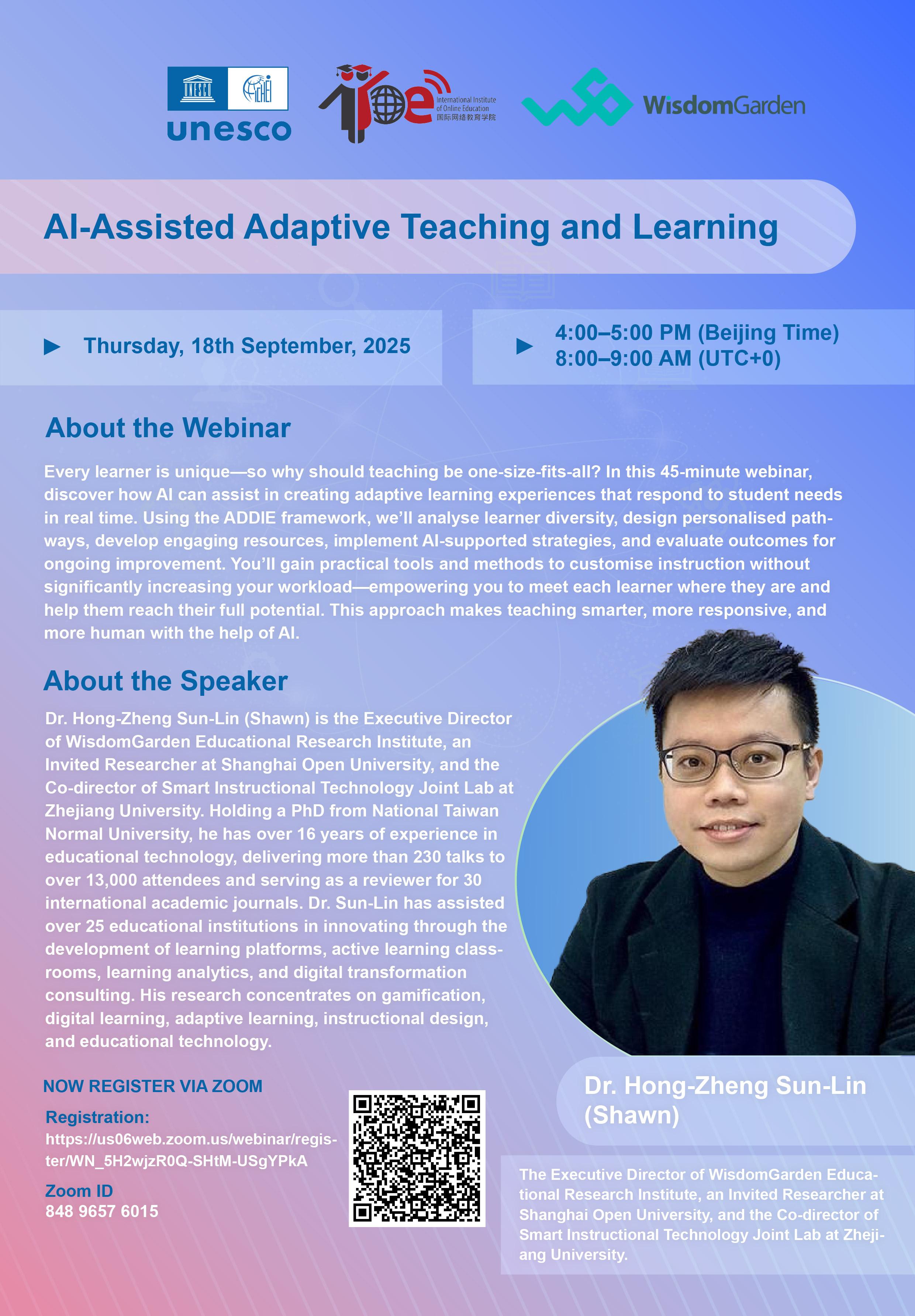 To address this challenge, IIOE is hosting a webinar on AI-Assisted Adaptive Teaching and Learning on September 18th, 2025. This session will provide educators with insights into using AI to design flexible, learner-centered approaches that make teaching smarter, more responsive, and more human.