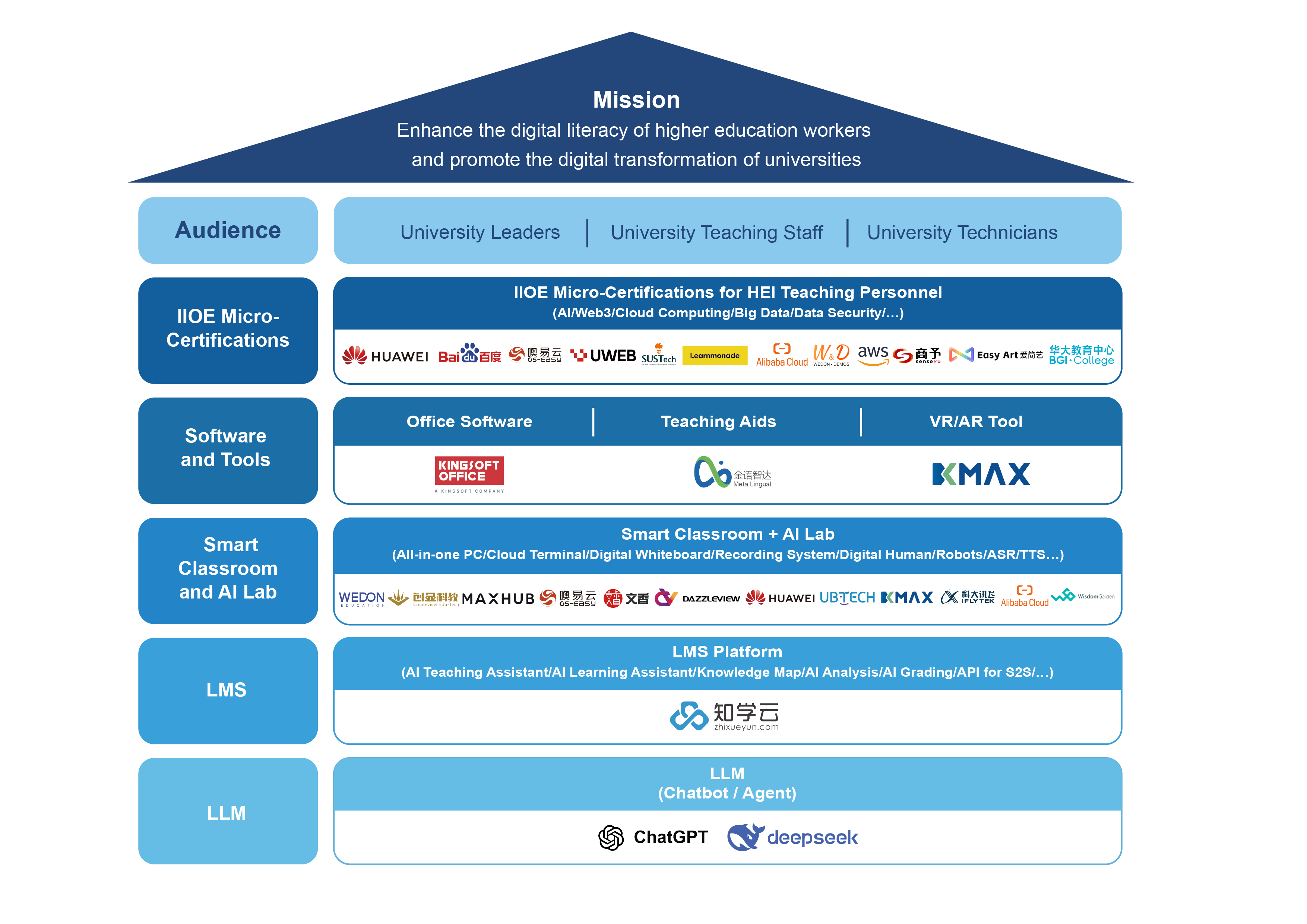 Dans ce contexte, l’NESCO-ICHEI s’est engagée à renforcer les compétences numériques et l’alphabétisation en intelligence artificielle du personnel de l’enseignement supérieur, en leur offrant des formations et un soutien au développement professionnel. En décembre 2019, l’UNESCO-ICHEI a lancé, en collaboration avec 11 établissements partenaires, des établissements chinois et des entreprises partenaires, la création de l’IIOE (https://www.iioe.org/).