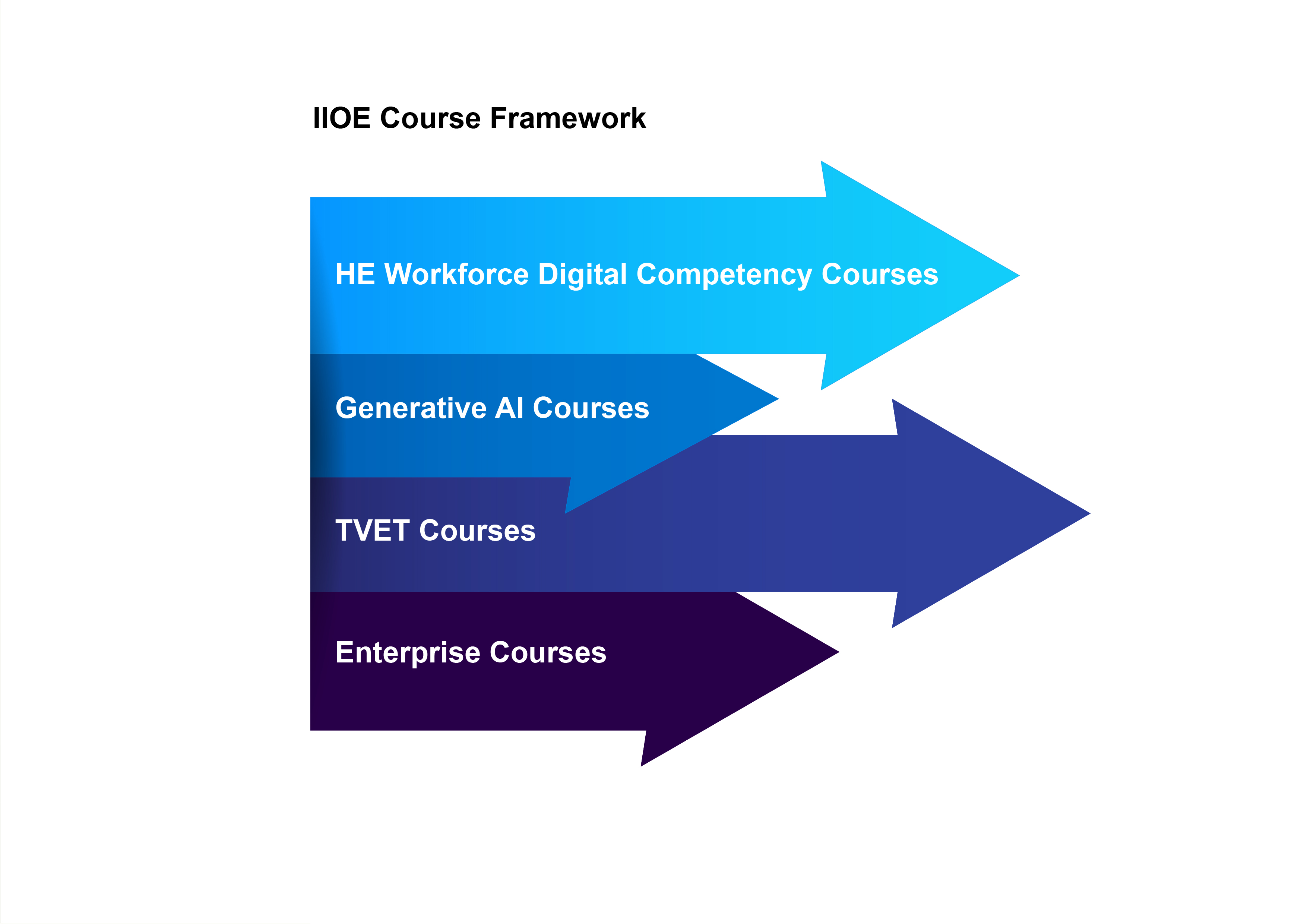 Actuellement, le projet de micro-certification IIOE comprend quatre modules principaux : les cours sur les compétences numériques pour le personnel de l’enseignement supérieur, les cours sur l’IA générative, les cours en formation professionnelle technique (TVET), et les cours d’entreprise, afin de répondre aux besoins diversifiés de montée en compétences des professionnels de l’enseignement supérieur.