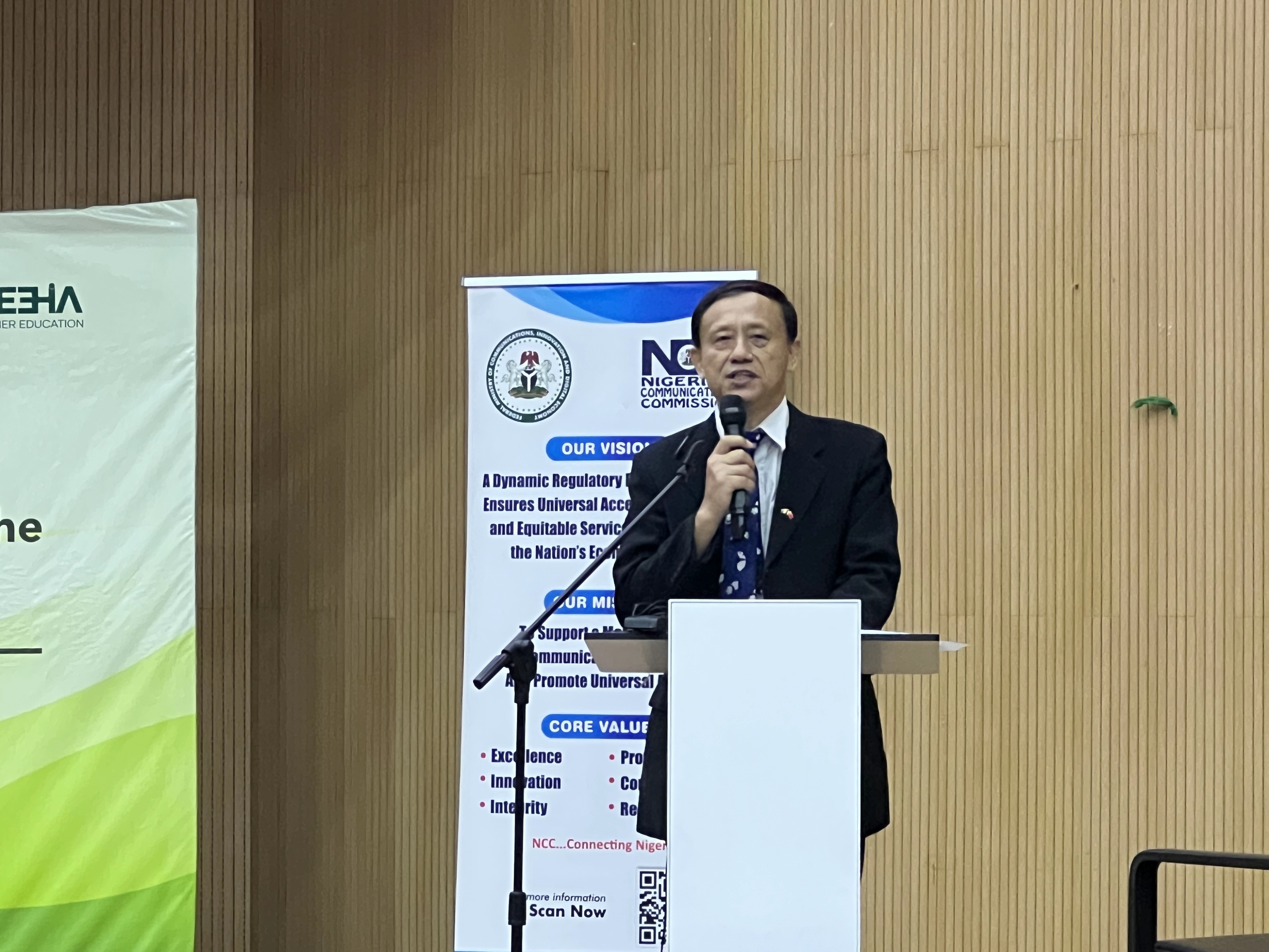 为了进一步应对生成式人工智能对高等教育体系带来的深刻变革与挑战,梁教授热情邀请了在座的尼日利亚高等教育界的各位利益相关方,共同参与到IIOE教学工作者数字技能微证书项目中来。他强调,这一项目旨在为广大尼日利亚高校教师、管理者和技术支持人员赋能,提升他们的数字化教学能力,确保他们能够灵活应对技术革新带来的教学需求变化,为尼日利亚高等教育的未来发展注入新的活力与动力。
