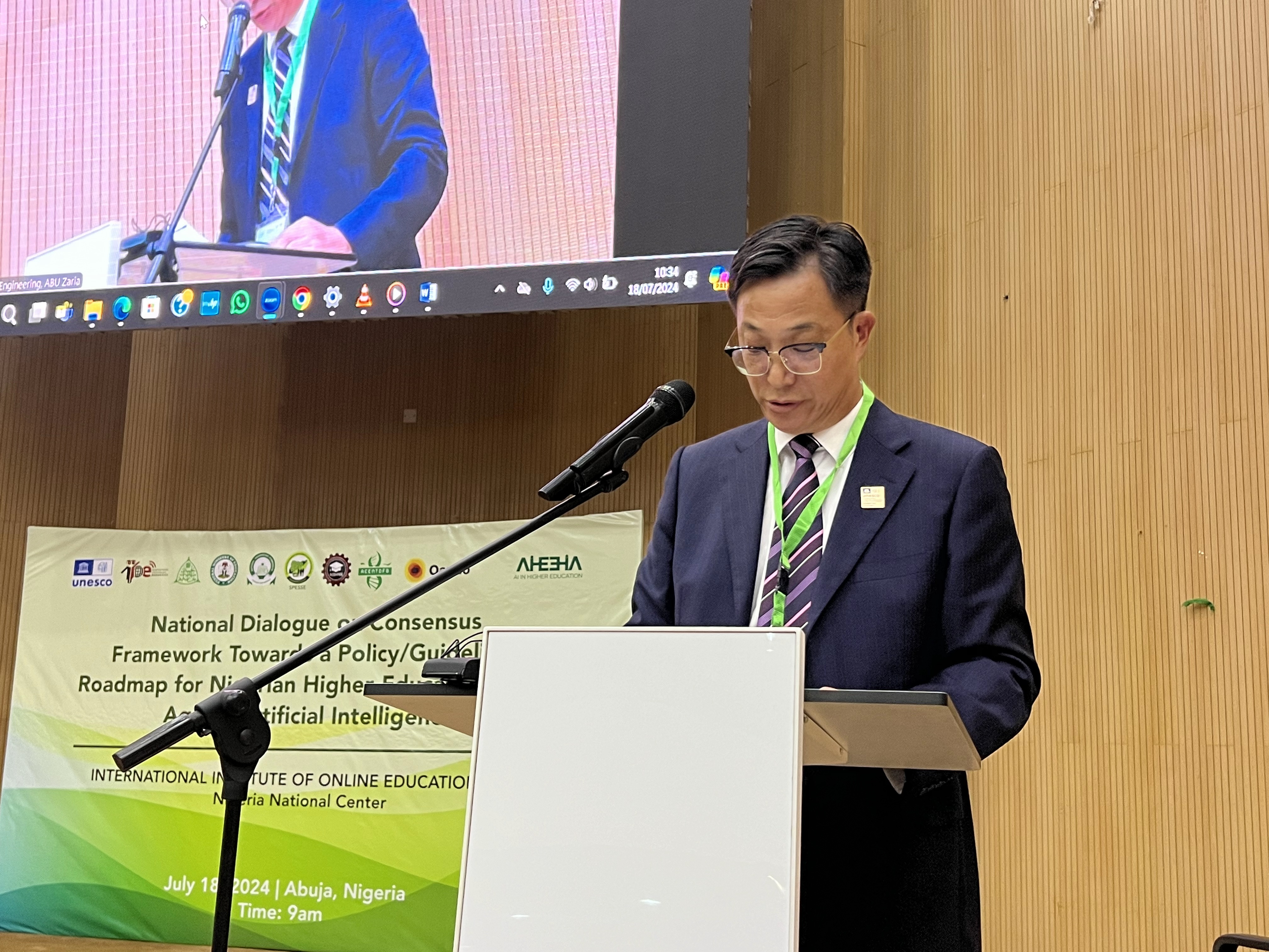 中国驻尼日利亚大使馆文化参赞李旭大先生高度赞扬了IIOE尼日利亚国家中心、创新中心、尼日利亚联邦教育部、尼日利亚国家大学委员会及其他相关利益相关方的重要努力和贡献。他强调AI在各个领域的深刻影响,着重提及了理解人工智能的潜在益处、局限性和风险对促进教育高质量发展的重要性,主张在此基础上系统性地应对人工智能挑战。李旭大先生认为,中非双方应当加强在人才培养等领域的合作,推动共同发展。他肯定了中尼长期以来的友好关系及在人工智能教育方面取得的最新进展,表达了通过“一带一路”等倡议加强持续合作的未来愿景。