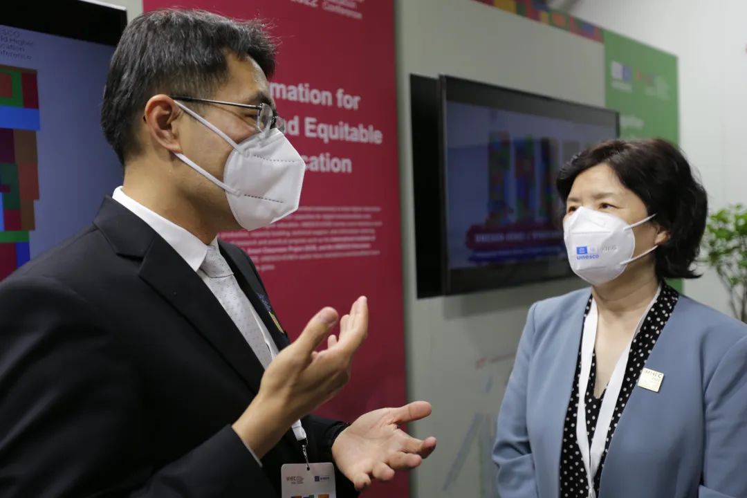 中国驻巴塞罗那总领事朱京阳参观创新中心世界高教大会展台